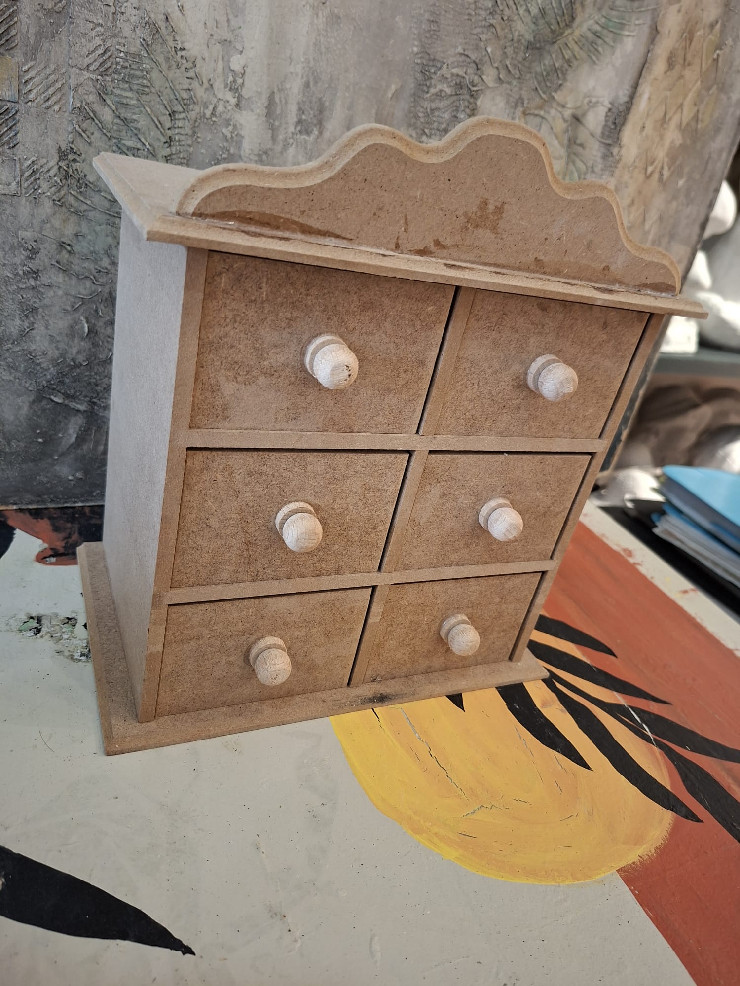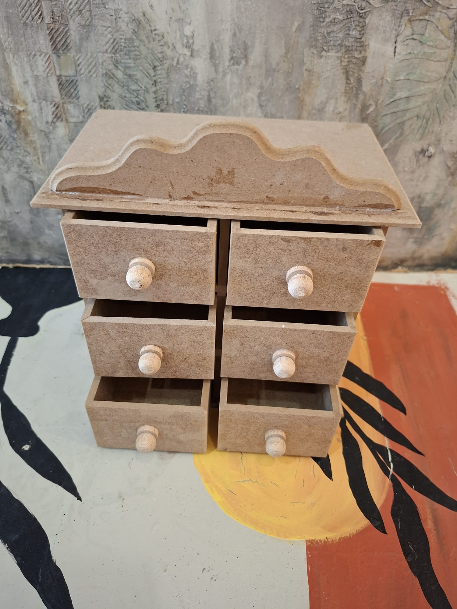 Ahşap 6 Çekmeceli Taçlı Kutu 26X23X15cm ,