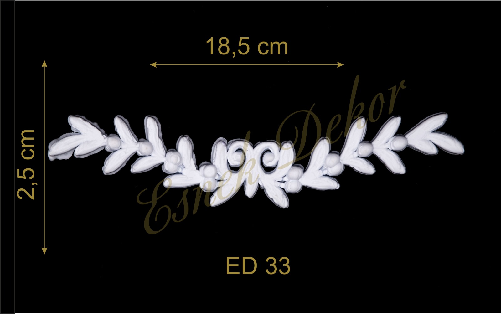 Esnek Aplik ED33 18X3cm ,İstediğiniz gibi esnetip her yüzeye uygulayabilirsiniz. birinci kalite polyester hammaddesinden özel makinelerde dökülmüş, her türde dekorasyon trendine uygun olarak boyanıp, süslenebilecek, hatasız, mükemmel detaylı, ağır, tok görünümlü, esnek objedir. Ürünü boyadıktan sonra vernikle sonlandırarak balkon, bahçe ve tüm odalarınızda kullanabilirsiniz. Taş tozundan veya silikon kalıba dökülerek yapılan objelerden değildir. Tok ve pürüzsüz bir görünüme sahiptir. Modası asla geçmeyecek, 2022 tasarımlı trend bir üründür. Modellerimiz en güncel haliyle stoklarımızda mevcuttur.