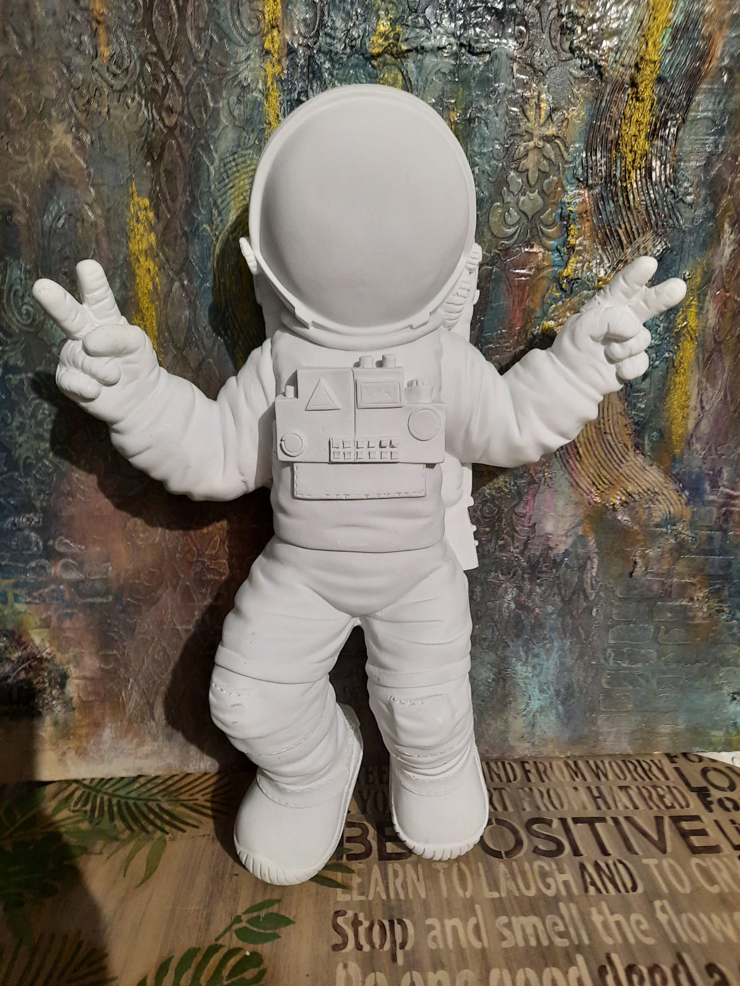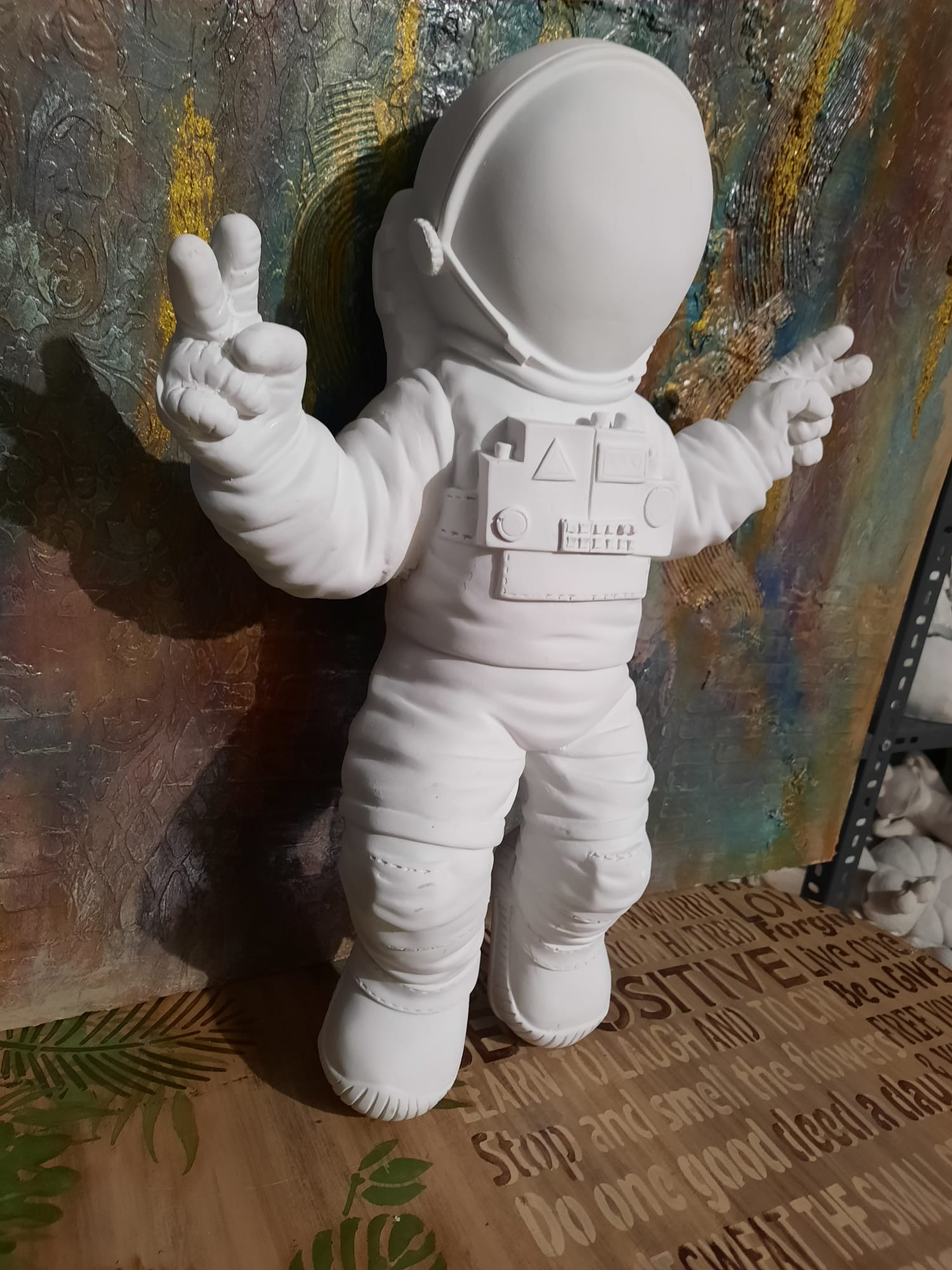 Polyester Astronot HYK738 46X36 cm , birinci kalite polyester hammaddesinden özel makinelerde dökülmüş, her türde dekorasyon trendine uygun olarak boyanıp, süslenebilecek, hatasız, mükemmel detaylı, ağır, tok görünümlü, polyester aksesuar objedir. Ürünü boyadıktan sonra vernikle sonlandırarak balkon, bahçe ve tüm odalarınızda kullanabilirsiniz. Taş tozundan veya silikon kalıba dökülerek yapılan objelerden değildir. Tok ve pürüzsüz bir görünüme sahiptir. Modası asla geçmeyecek, 2020 tasarımlı trend bir üründür.