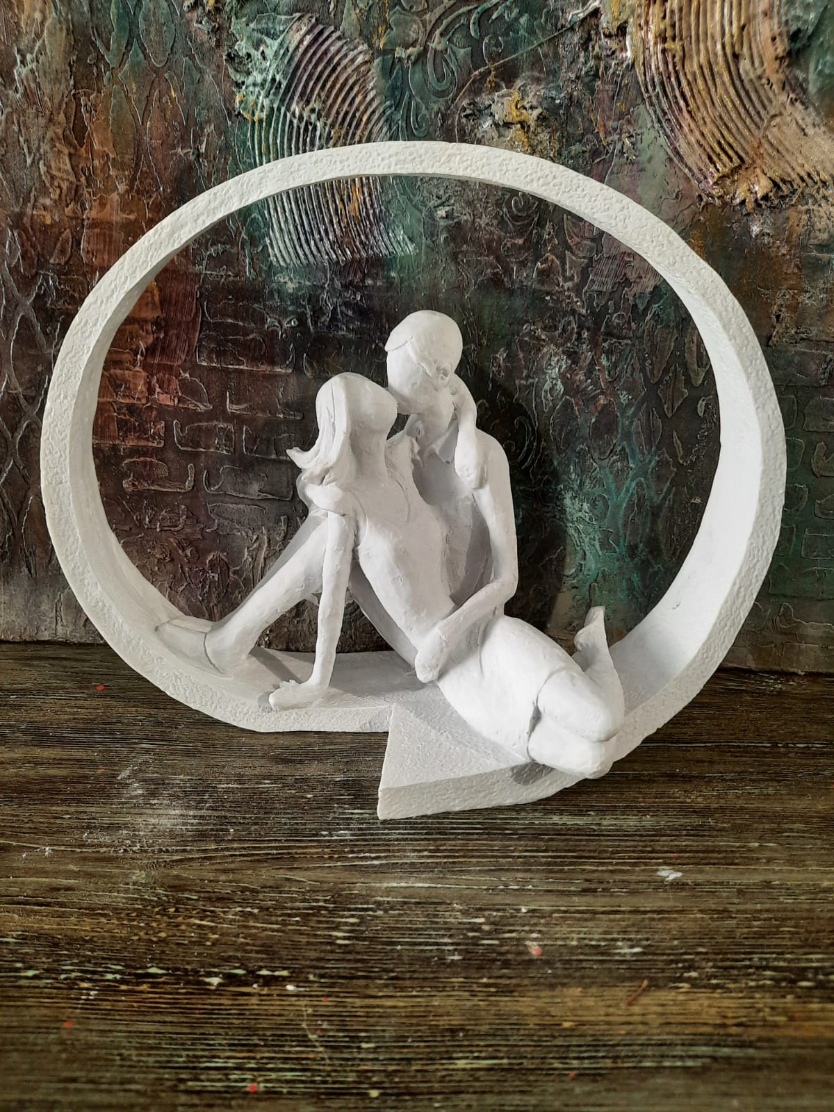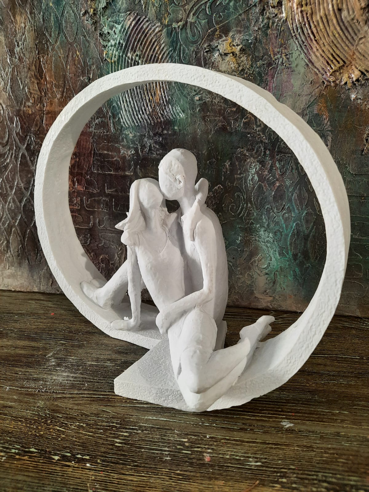 Polyester Çember İçinde Sevgililer HYK267 22X27cm, birinci kalite polyester hammaddesinden özel makinelerde dökülmüş, her türde dekorasyon trendine uygun olarak boyanıp, süslenebilecek, hatasız, mükemmel detaylı, ağır, tok görünümlü, polyester aksesuar objedir. Ürünü boyadıktan sonra vernikle sonlandırarak balkon, bahçe ve tüm odalarınızda kullanabilirsiniz. Taş tozundan veya silikon kalıba dökülerek yapılan objelerden değildir. Tok ve pürüzsüz bir görünüme sahiptir. Modası asla geçmeyecek, 2020 tasarımlı trend bir üründür.