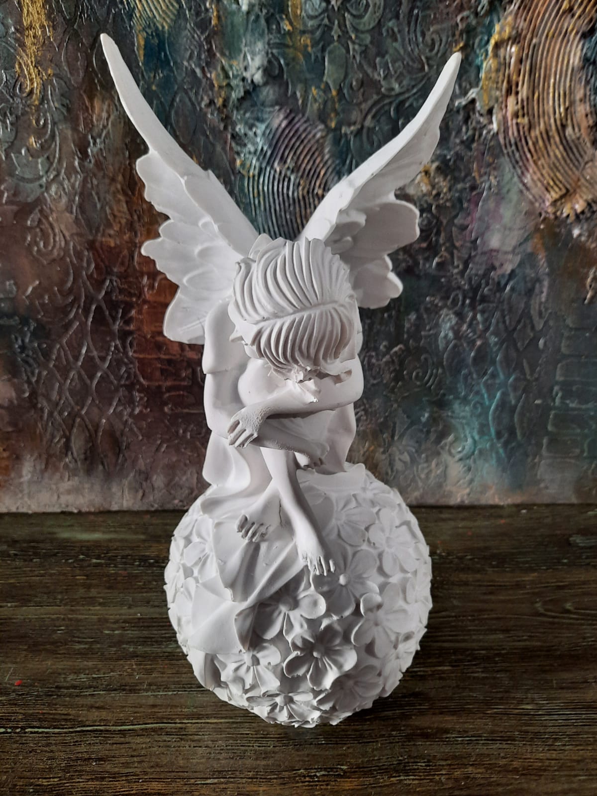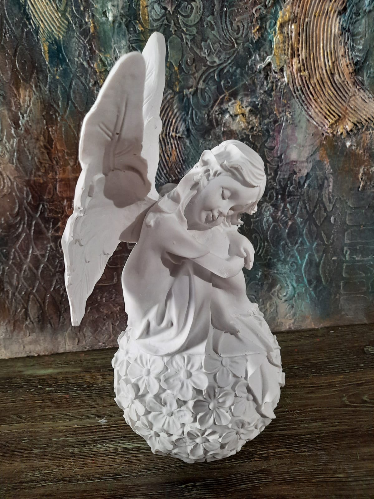 Polyester Çiçek Küreli Melek Biblo Model1 31X15cm, birinci kalite polyester hammaddesinden özel makinelerde dökülmüş, her türde dekorasyon trendine uygun olarak boyanıp, süslenebilecek, hatasız, mükemmel detaylı, ağır, tok görünümlü, polyester aksesuar objedir. Ürünü boyadıktan sonra vernikle sonlandırarak balkon, bahçe ve tüm odalarınızda kullanabilirsiniz. Taş tozundan veya silikon kalıba dökülerek yapılan objelerden değildir. Tok ve pürüzsüz bir görünüme sahiptir. Modası asla geçmeyecek, 2020 tasarımlı trend bir üründür.
