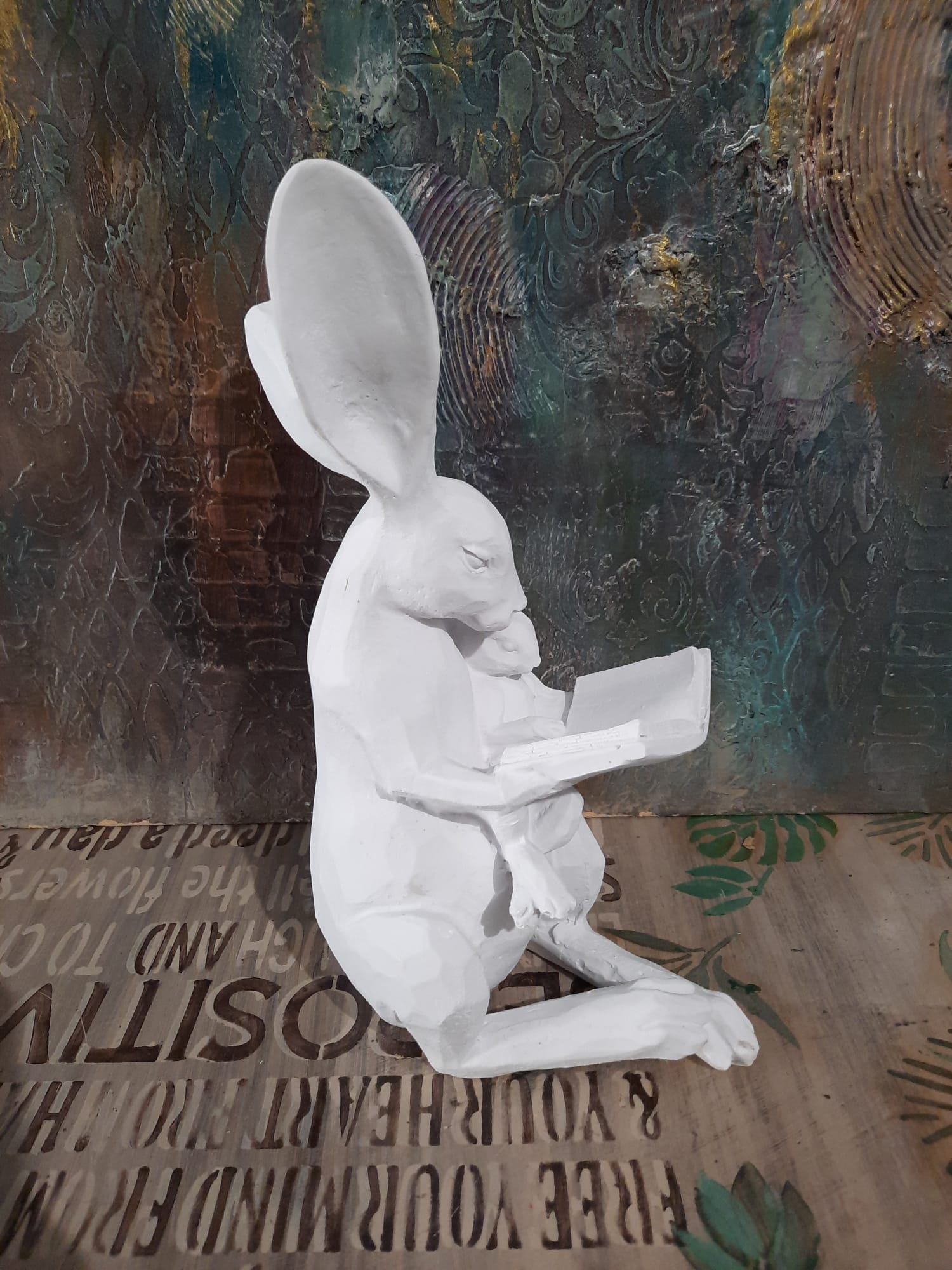 Polyester Kitap Okuyan Tavşan HYK1097 27X18cm, birinci kalite polyester hammaddesinden özel makinelerde dökülmüş, her türde dekorasyon trendine uygun olarak boyanıp, süslenebilecek, hatasız, mükemmel detaylı, ağır, tok görünümlü, polyester aksesuar objedir. Ürünü boyadıktan sonra vernikle sonlandırarak balkon, bahçe ve tüm odalarınızda kullanabilirsiniz. Taş tozundan veya silikon kalıba dökülerek yapılan objelerden değildir. Tok ve pürüzsüz bir görünüme sahiptir. Modası asla geçmeyecek, 2020 tasarımlı trend bir üründür.