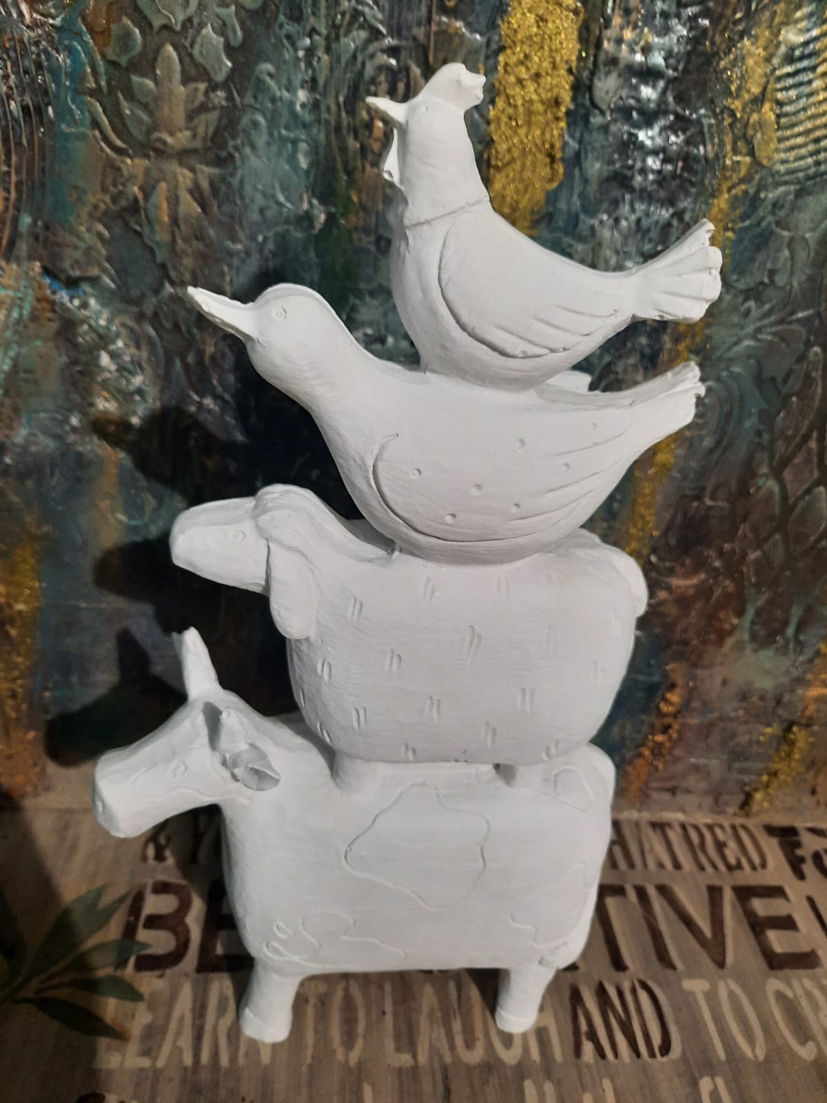 Polyester Üst Üste Hayvanlar HYK1026 28X15cm, birinci kalite polyester hammaddesinden özel makinelerde dökülmüş, her türde dekorasyon trendine uygun olarak boyanıp, süslenebilecek, hatasız, mükemmel detaylı, ağır, tok görünümlü, polyester aksesuar objedir. Ürünü boyadıktan sonra vernikle sonlandırarak balkon, bahçe ve tüm odalarınızda kullanabilirsiniz. Taş tozundan veya silikon kalıba dökülerek yapılan objelerden değildir. Tok ve pürüzsüz bir görünüme sahiptir. Modası asla geçmeyecek, 2020 tasarımlı trend bir üründür.