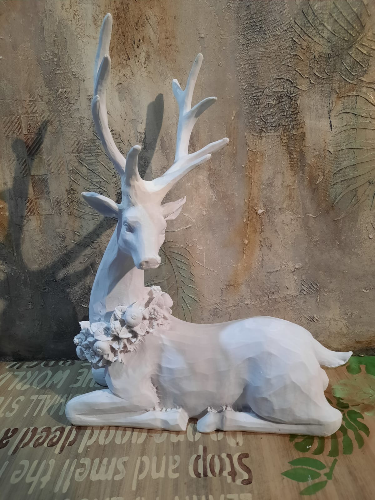 Polyester Yatan Geyik HYK187 25X32cm, birinci kalite polyester hammaddesinden özel makinelerde dökülmüş, her türde dekorasyon trendine uygun olarak boyanıp, süslenebilecek, hatasız, mükemmel detaylı, ağır, tok görünümlü, polyester aksesuar objedir. Ürünü boyadıktan sonra vernikle sonlandırarak balkon, bahçe ve tüm odalarınızda kullanabilirsiniz. Taş tozundan veya silikon kalıba dökülerek yapılan objelerden değildir. Tok ve pürüzsüz bir görünüme sahiptir. Modası asla geçmeyecek, 2020 tasarımlı trend bir üründür.