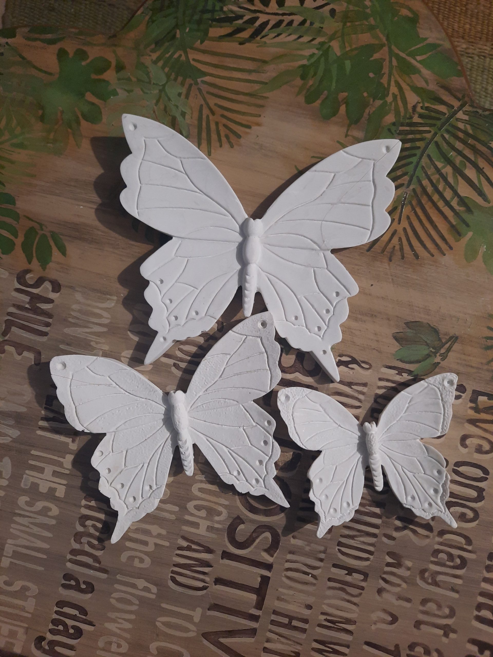 Polyester 3lü Kelebek D35 20X17-22X13 cm , birinci kalite polyester hammaddesinden özel makinelerde dökülmüş, her türde dekorasyon trendine uygun olarak boyanıp, süslenebilecek, hatasız, mükemmel detaylı, ağır, tok görünümlü, polyester aksesuar objedir. Ürünü boyadıktan sonra vernikle sonlandırarak balkon, bahçe ve tüm odalarınızda kullanabilirsiniz. Taş tozundan veya silikon kalıba dökülerek yapılan objelerden değildir. Tok ve pürüzsüz bir görünüme sahiptir. Modası asla geçmeyecek, 2020 tasarımlı trend bir üründür.