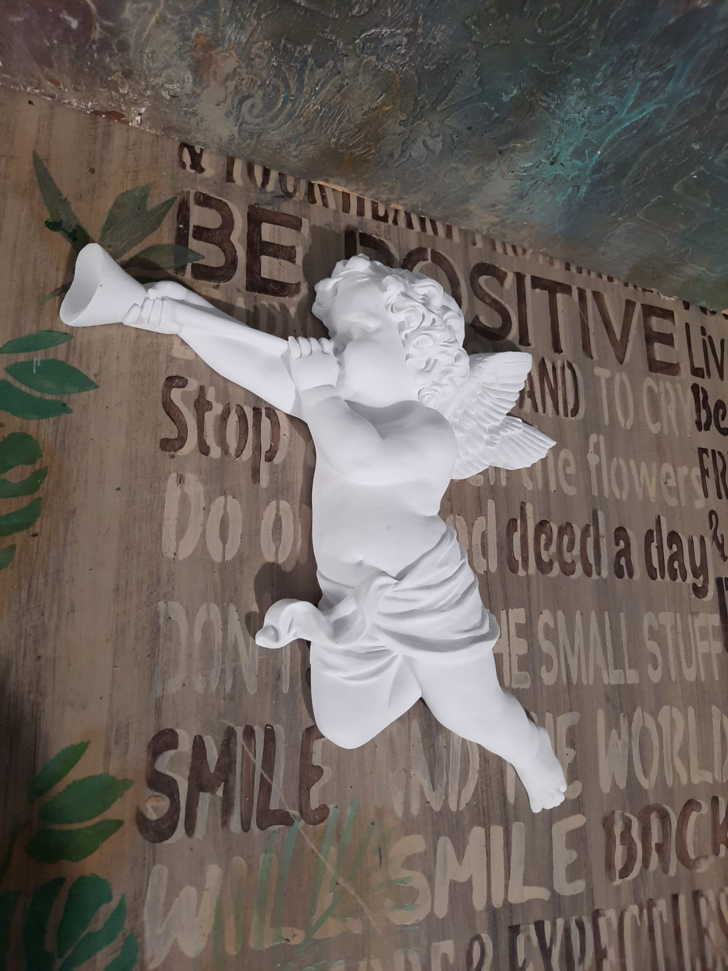 Polyester Duvar Melek Trompetli HYK1114 24X21cm, birinci kalite polyester hammaddesinden özel makinelerde dökülmüş, her türde dekorasyon trendine uygun olarak boyanıp, süslenebilecek, hatasız, mükemmel detaylı, ağır, tok görünümlü, polyester aksesuar objedir. Ürünü boyadıktan sonra vernikle sonlandırarak balkon, bahçe ve tüm odalarınızda kullanabilirsiniz. Taş tozundan veya silikon kalıba dökülerek yapılan objelerden değildir. Tok ve pürüzsüz bir görünüme sahiptir. Modası asla geçmeyecek, 2020 tasarımlı trend bir üründür.