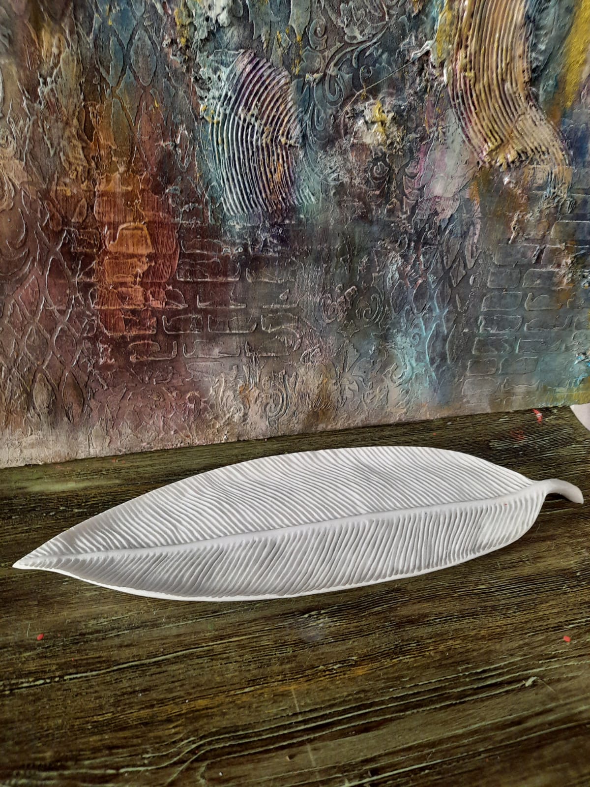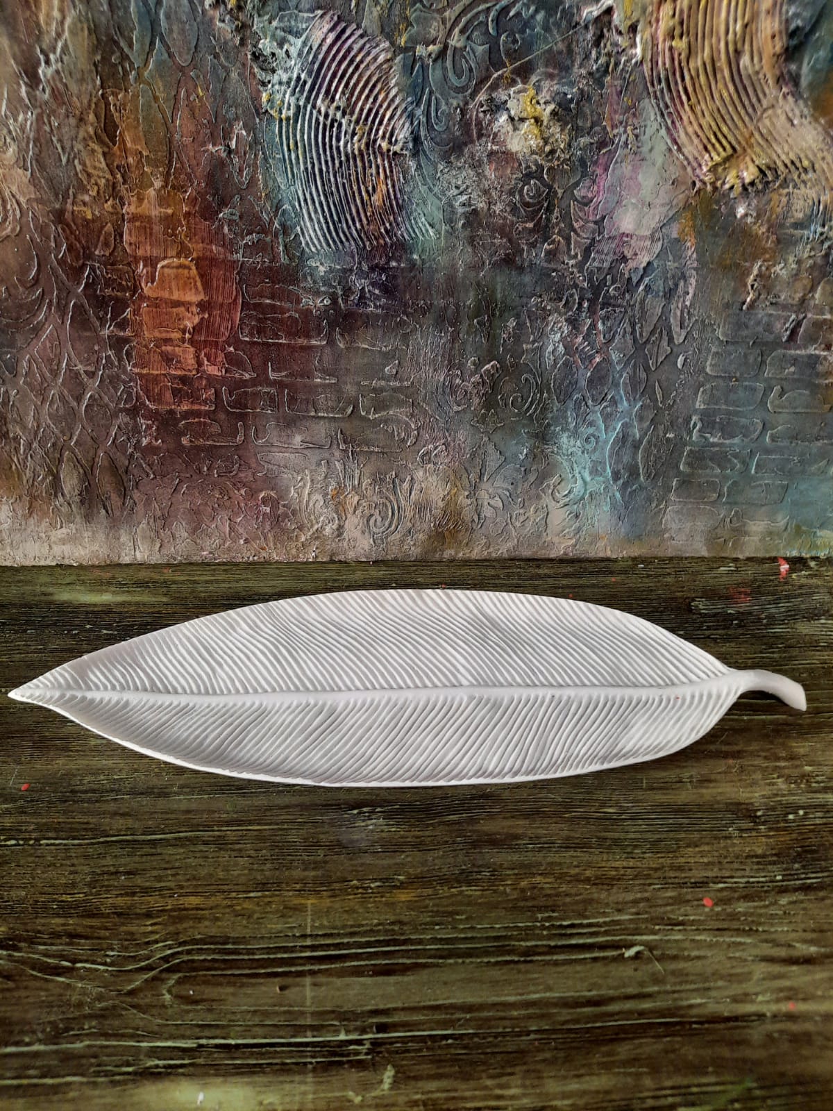 Polyester Yaprak Sunumluk Büyük MH03 41X13cm, birinci kalite polyester hammaddesinden özel makinelerde dökülmüş, her türde dekorasyon trendine uygun olarak boyanıp, süslenebilecek, hatasız, mükemmel detaylı, ağır, tok görünümlü, polyester aksesuar objedir. Ürünü boyadıktan sonra vernikle sonlandırarak balkon, bahçe ve tüm odalarınızda kullanabilirsiniz. Taş tozundan veya silikon kalıba dökülerek yapılan objelerden değildir. Tok ve pürüzsüz bir görünüme sahiptir. Modası asla geçmeyecek, 2020 tasarımlı trend bir üründür.