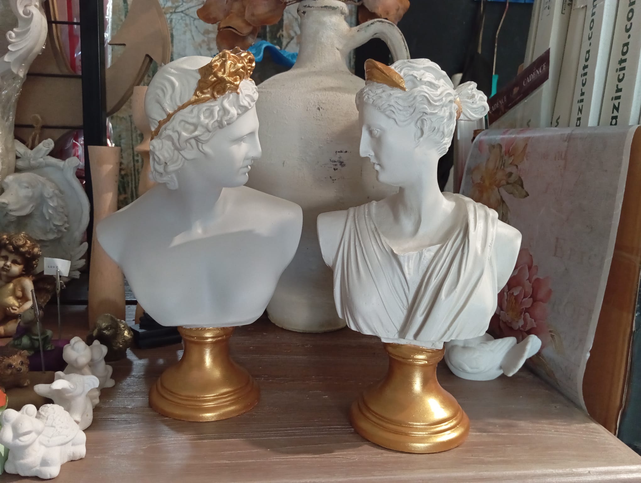 Polyester David&Diana Büst 32X20 cm ,derinlik Uzun yıllar kullanabileceğiniz çok sık tasarım ürünüdür. Ürün %100 el yapımıdır. Boyaması fırçayla yapılmaktadır. Akrilik boyalarla boyanıyor ve üç kat vernik yapılıyor. Hediyelik, çeyizlik ya da ev dekorasyonunuzda kullanabilirsiniz. Farklı renk seçenekleriyle WhatsApp üzerinden size özel sipariş verilebilmektedir.