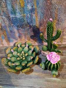 Polyester Dekoratif 3lü Kaktüs Set