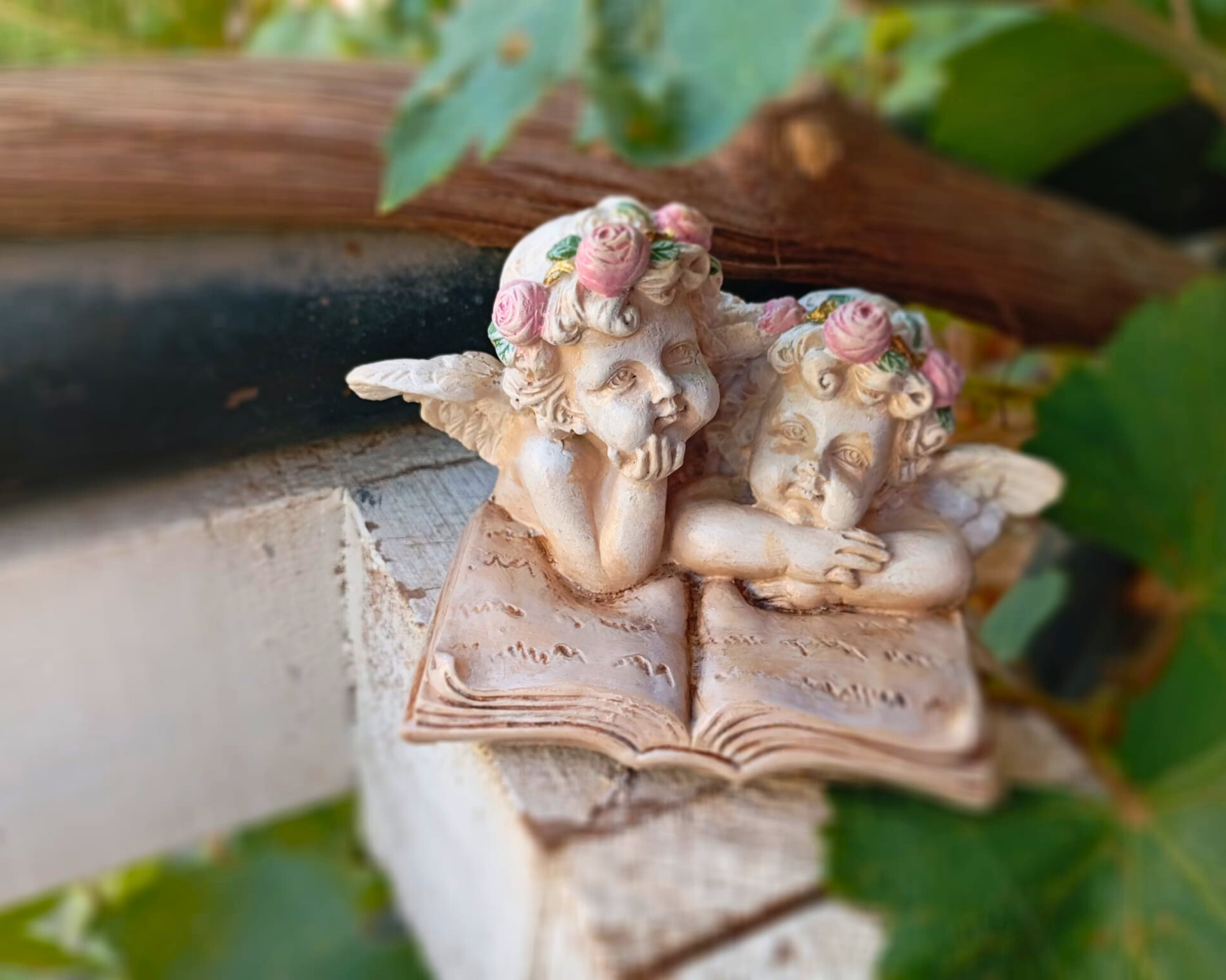 Polyester Kitap Okuyan Melekler 10X6cm ,derinlik  Uzun yıllar kullanabileceğiniz çok sık tasarım ürünüdür. Ürün %100 el yapımıdır. Boyaması fırçayla yapılmaktadır. Akrilik boyalarla boyanıyor ve üç kat vernik yapılıyor. Hediyelik, çeyizlik ya da ev dekorasyonunuzda kullanabilirsiniz. Farklı renk seçenekleriyle WhatsApp üzerinden size özel sipariş verilebilmektedir.