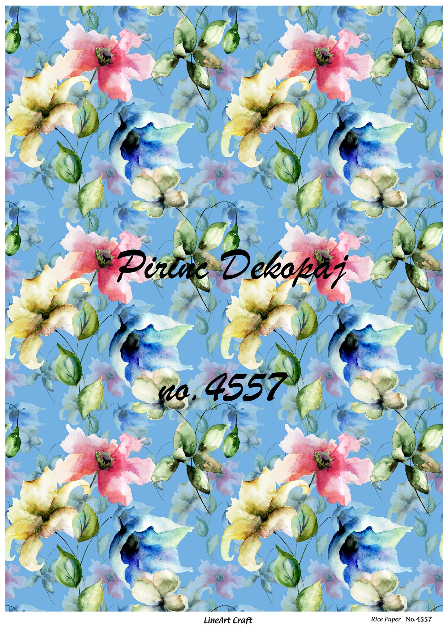 29x42cm (A3) Ebatındadır. Pirinç kağıt dekopajlar çeltik sapından yapılan ince kâğıt üzerine basılı olup, dekopaj çalışmaları için kullanımı kolay, ince ve dirençli her türlü yüzeyde Rich Magic Dekopaj Tutkalı ile kullanılabilir. Kağıdın yapısı gereği natürel ve şık tasarımlar çıkarabilirsiniz. Uygulaması da oldukça basittir.
