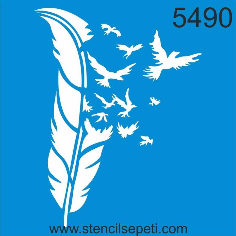 Stencil Tüy ve Kuşlar 30×30 No:5490