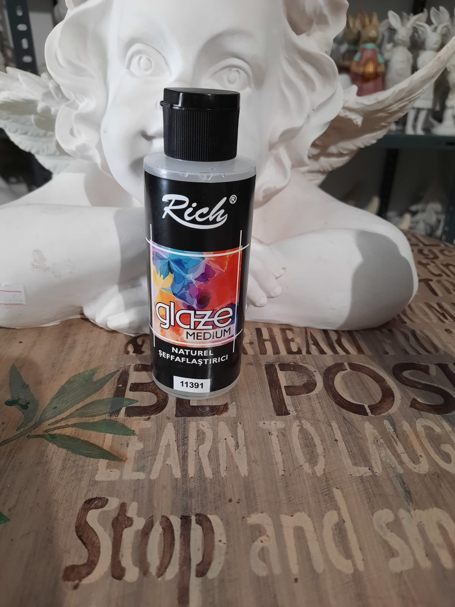 Rich glaze medium dekoratif ve sanatsal hobi çalışmalarında kullanılan su bazlı, kokusuz özel efekt almaya yardımcı bir üründür.